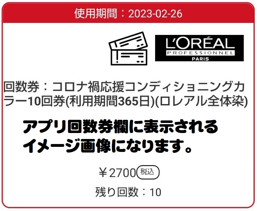 回数券:コロナ禍応援コンディショニングカラー10回券(利用期間365日)(ロレアル全体染)