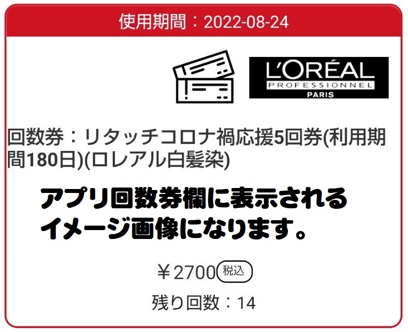 回数券:リタッチコロナ禍応援5回券(利用期間180日)(ロレアル白髪染)