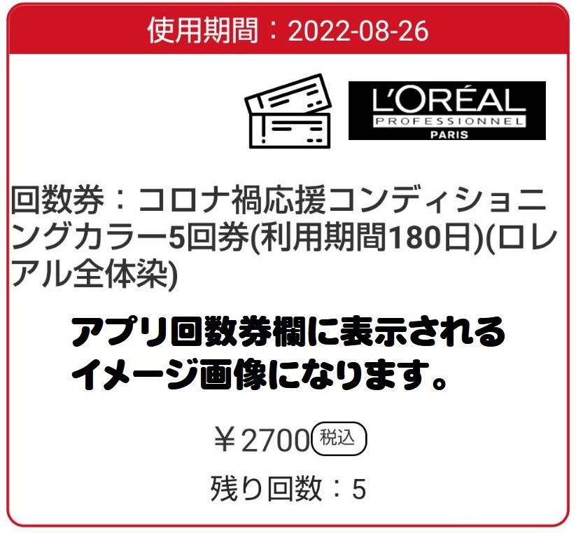 回数券:コロナ禍応援コンディショニングカラー5回券(利用期間180日)(ロレアル全体染)